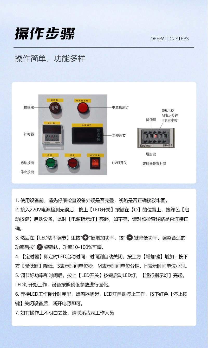 采用無極可調技術,具有能量可調,一鍵待機功能,節約不必要的能耗開支